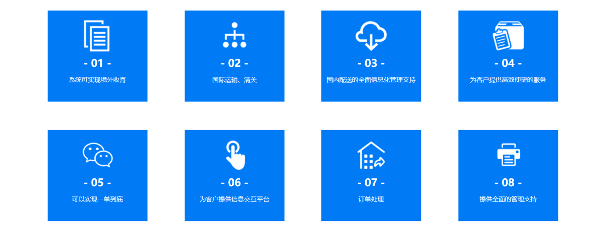 為人在海外卻在國內(nèi)電商網(wǎng)站(淘寶、京東)購物,需要寄回國外的客戶而量身打造;出口轉(zhuǎn)運(yùn)系統(tǒng)為海外客戶提供代收包裹、倉儲(chǔ)管理、退換貨、國際快遞等服務(wù)管理;為海外客戶獲取中國商品提供綜合物流解決方案。