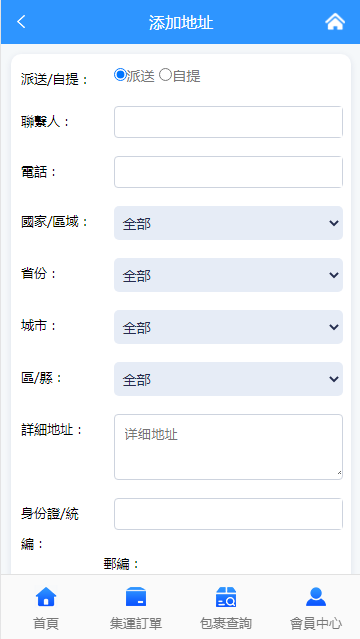 1.第一次注冊會員后,進(jìn)來就是添加地址的頁面,按照要求填寫即可。