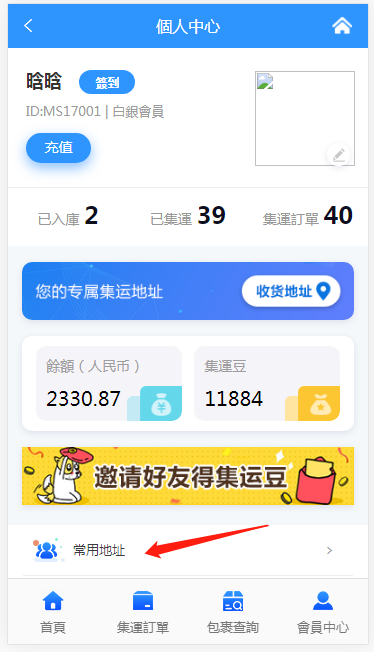 2. 如果之后想添加別的地址,可以到會員中心的常用地址處增加。