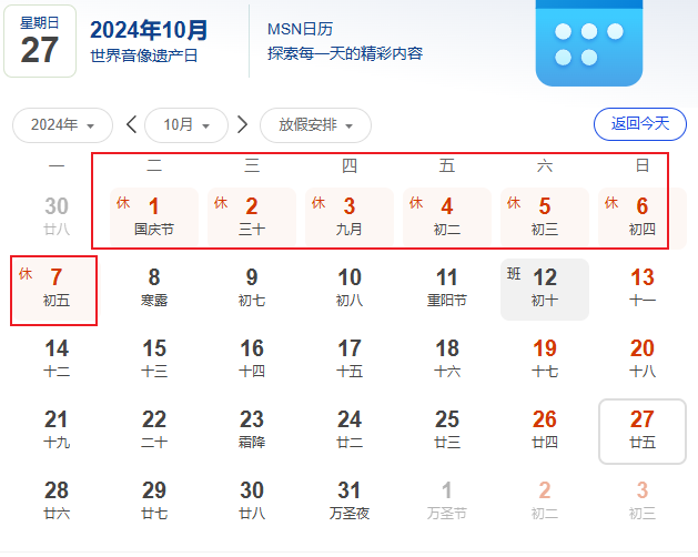 2024年10月01日(周二)放假休息,2024年10月08日(周二)開始恢復(fù)上班.2024年10月12日(周六)補班。