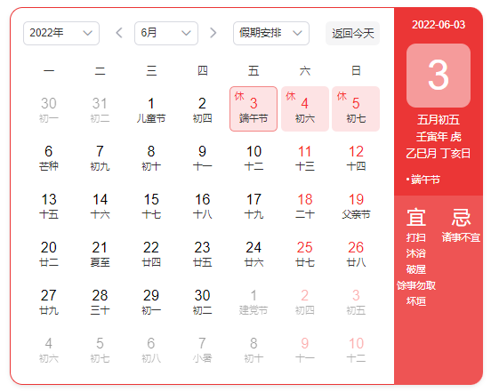 2022年6月3日(周五)放假休息,6月6日(周一)開始恢復(fù)上班。